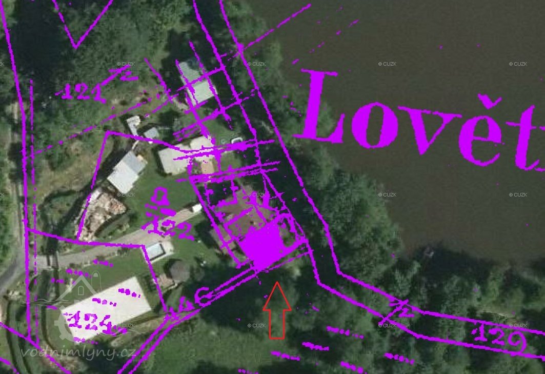 Mlýn stál pod hrází Lovětínského rybníka, kterým protéká stejnojmenný potok.