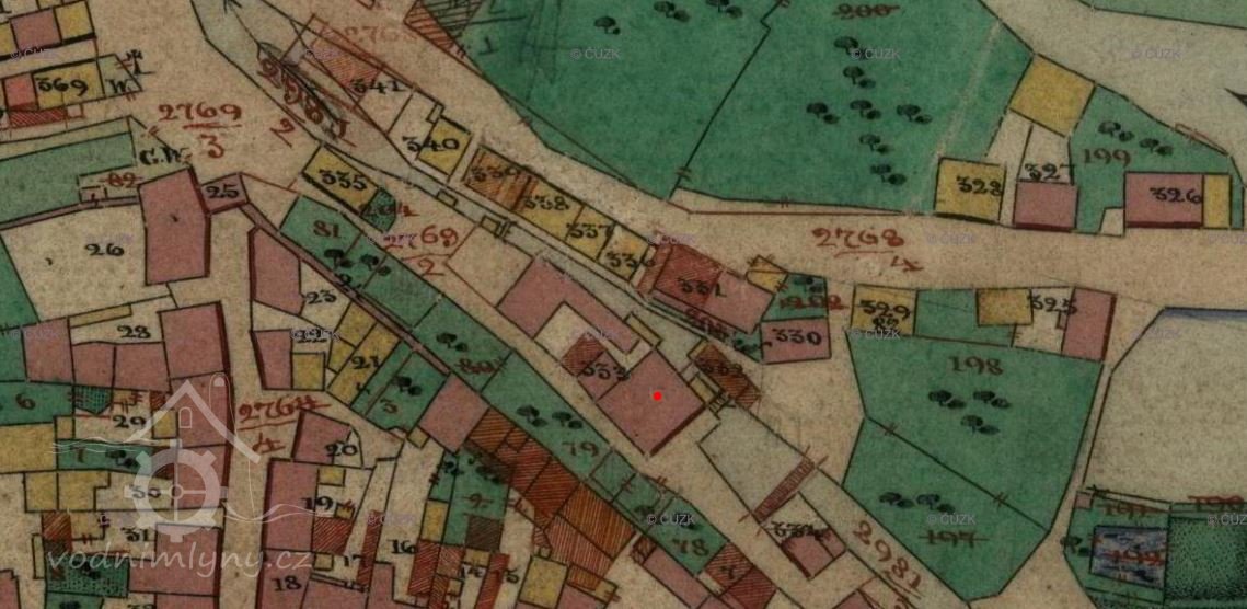 Mlýn se v čp.1/III připomíná už roku 1463, kdy patřil Vaňkovi mlynáři „pod brankú“. Ten prodal svoji usedlost roku 1472 za 24 kop českých grošů jistému Václavu Podmolovi. Vdova po něm, Kateřina Podmolka, mlýn odprodala nějakému Václavovi mlynářovi, zvanému „Mlynka“.