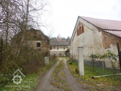 Budovy uspořádány kolem dvora, mlýnice dnes ve zříceninách