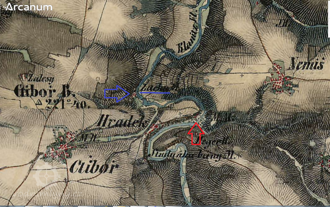 Horní mlýn v Hrádku u Ctiboře, stále v dobrém stavu, dnes slouží jako malá vodní elektrárna.