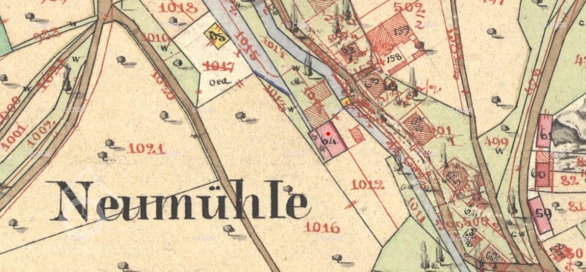 Na císařských povinných otiscích a indikační skice je lokalita, ve které mlýn stál, nazvána Neumühle - Nový mlýn.