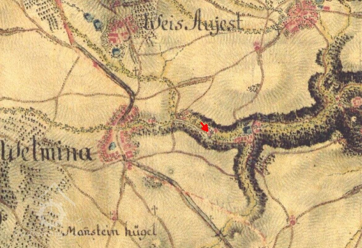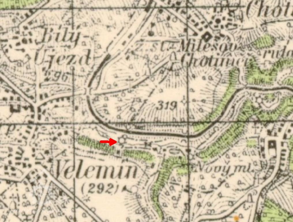 Mlýn je zakreslen na mapě I. vojenského mapování.