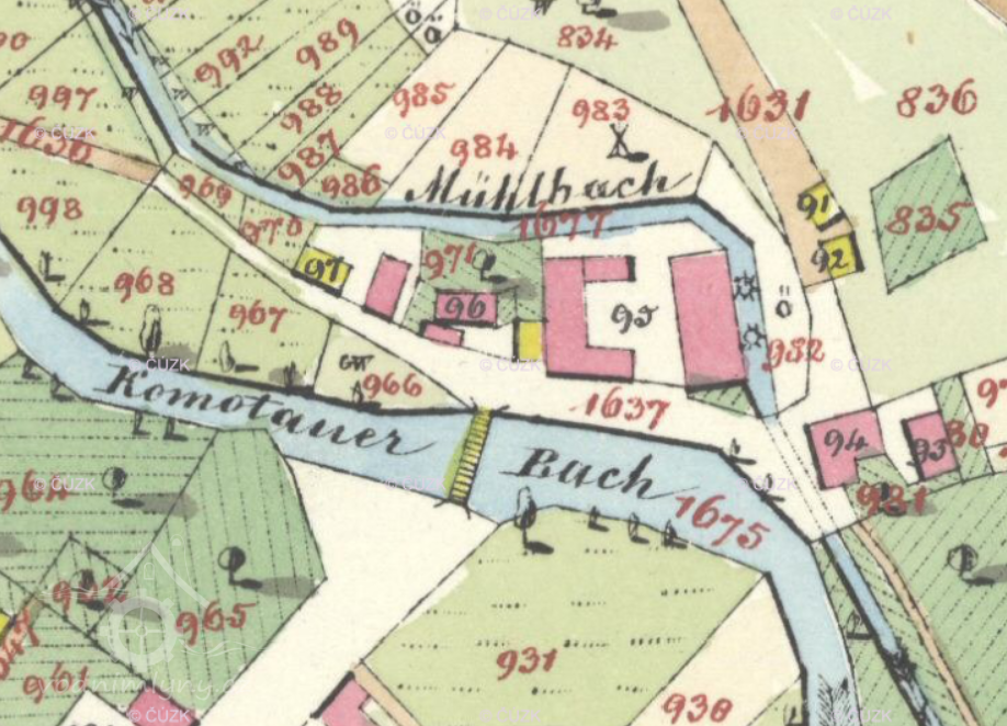 Velký mlýn na půdorysu U, v roce 2017 silně poškozený požárem, nicméně stále obývaný.