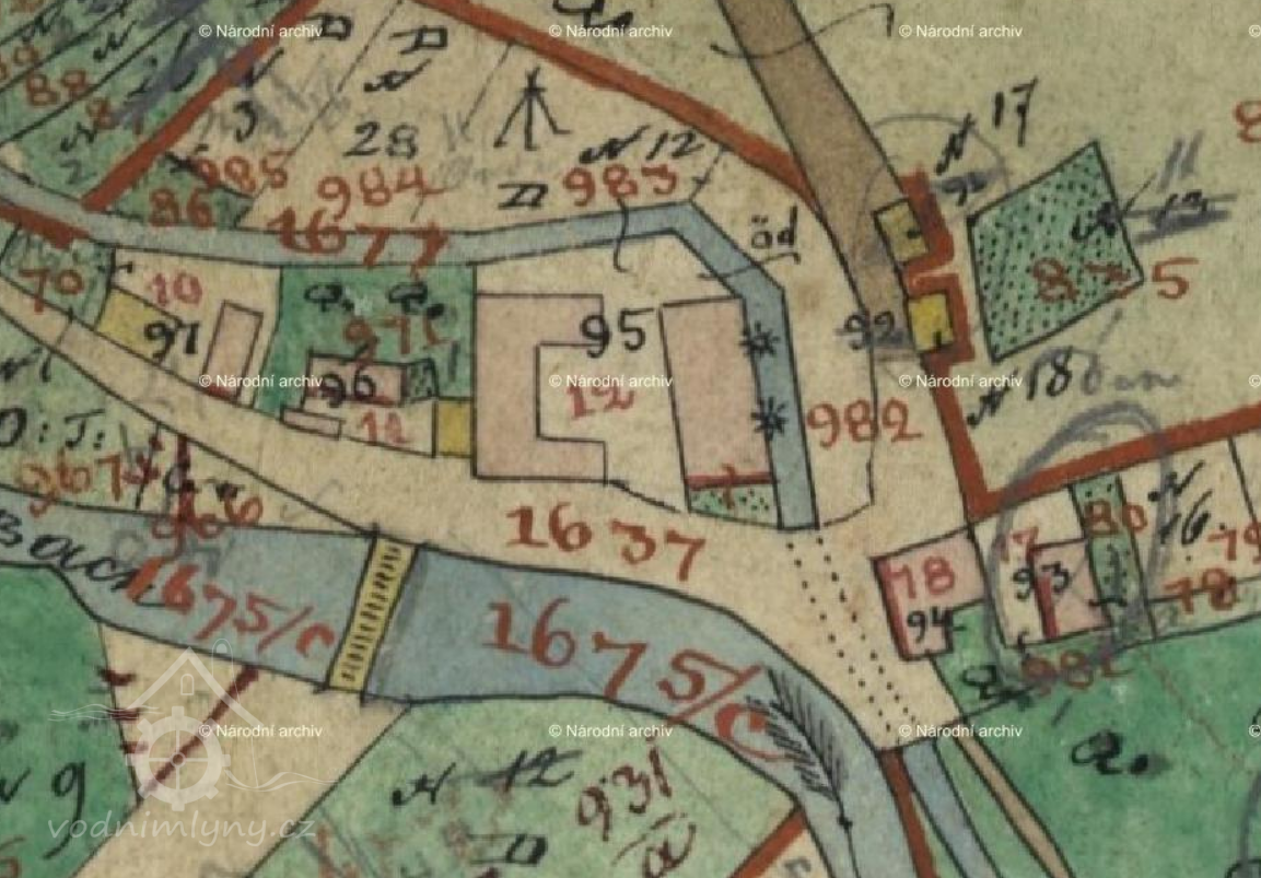 Popis1930: 1 kolo na svrchní vodu, hltnost 0,245 m3/s, spád 3,1 m, výkon 6,59 HP