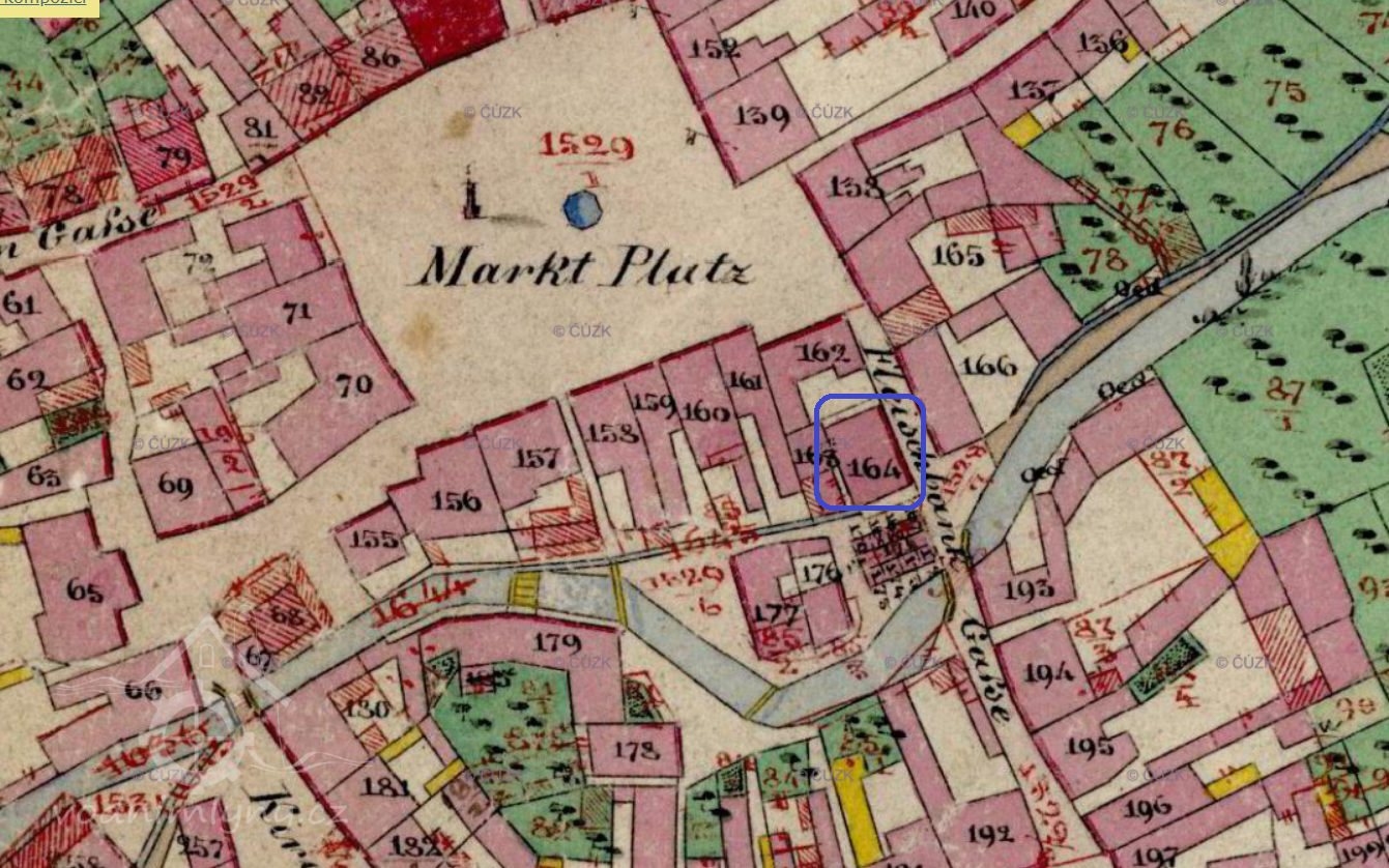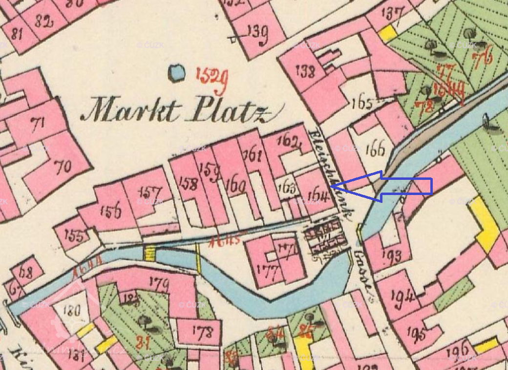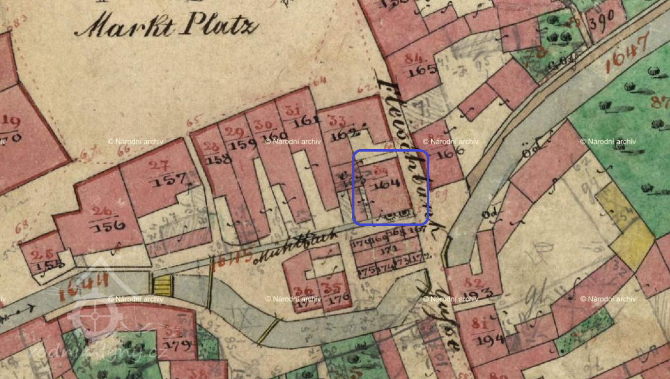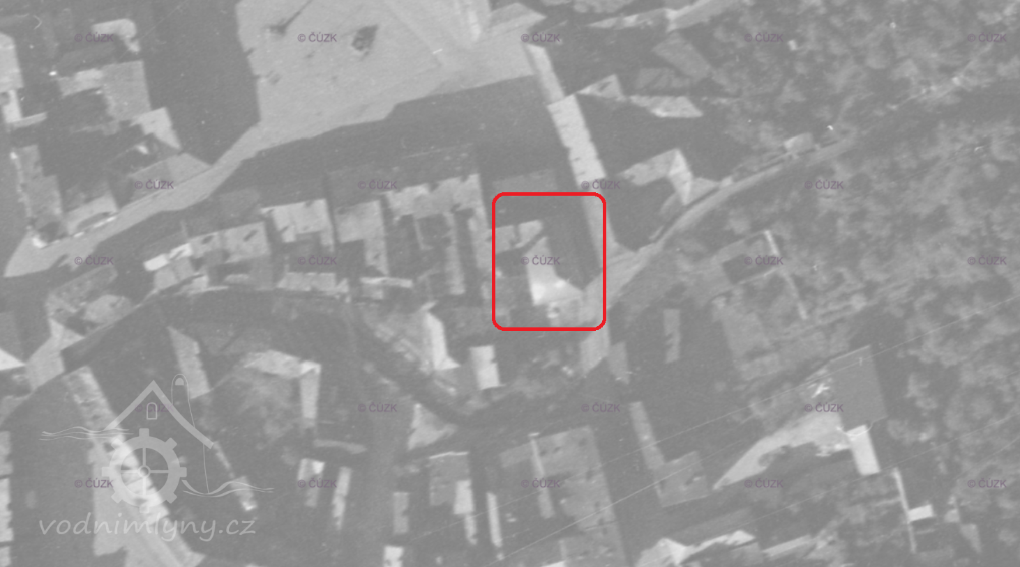 Původně středověký mlýn v centru města, zbořený i s okolními domy včetně unikátně dochovaných masných krámů v 80. letech 20. stol. v rámci systematické likvidace historického jádra Jirkova.