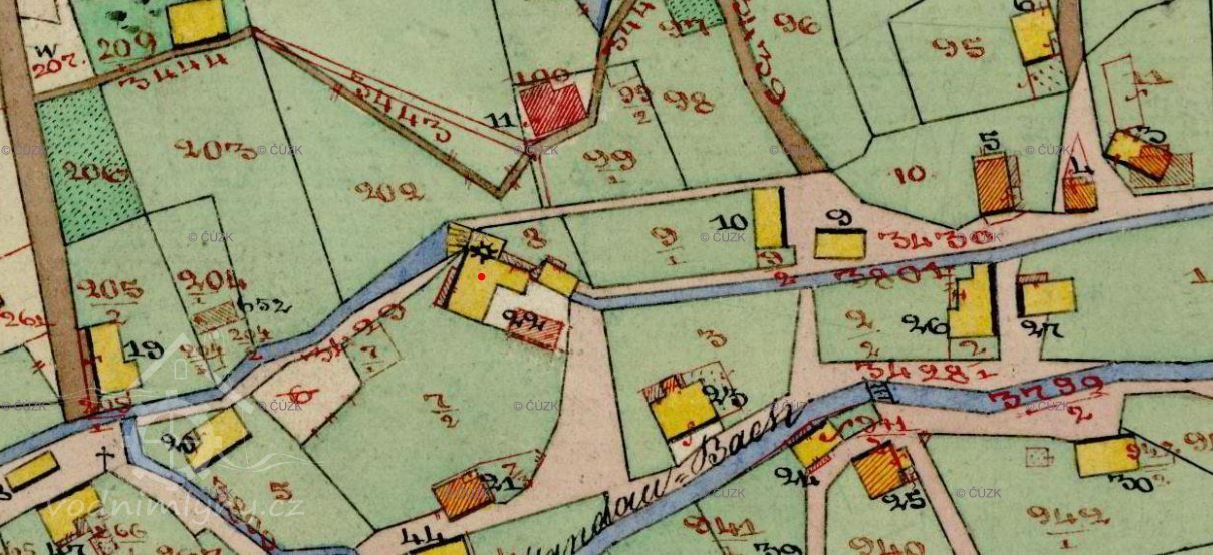 mlýn je zakreslan na mapě I. vojenského mapování