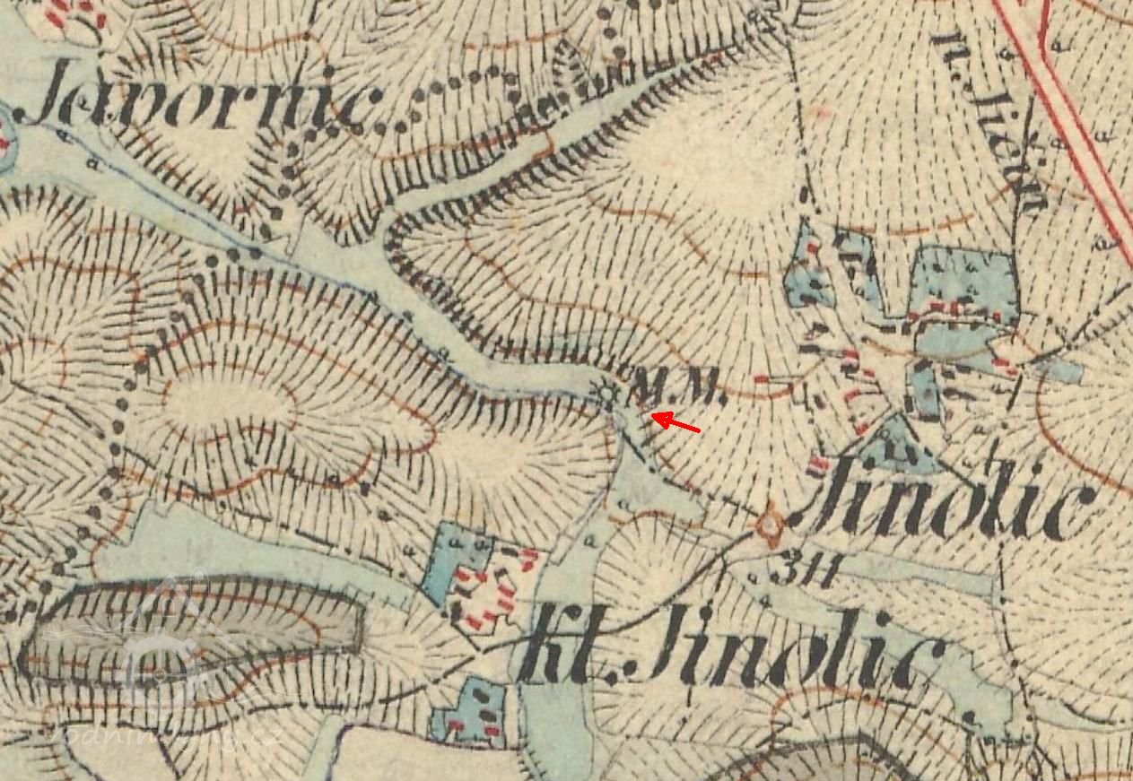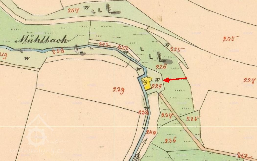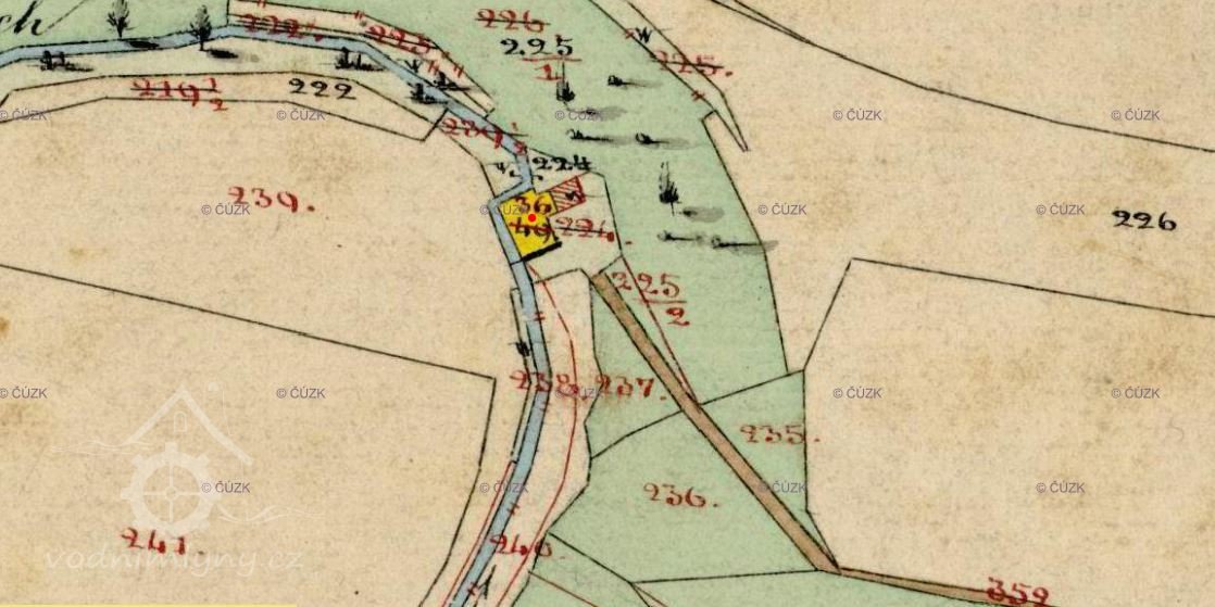 Mlýn je zakreslen na císařských povinných otiscích, indikační skice. Na II. vojenském mapování je uveden jako MM, moučný mlýn.