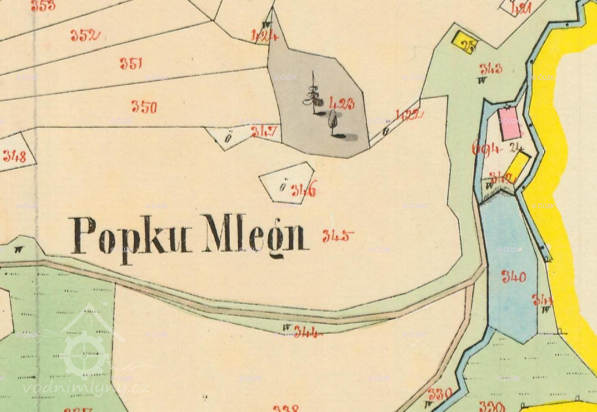 Popis1930: 1 kolo na svrchní vodu, hltnost 0,05 m3/s, spád 4 m, výkon 1,78 HP (nejmenší výkon na Ledečsku)