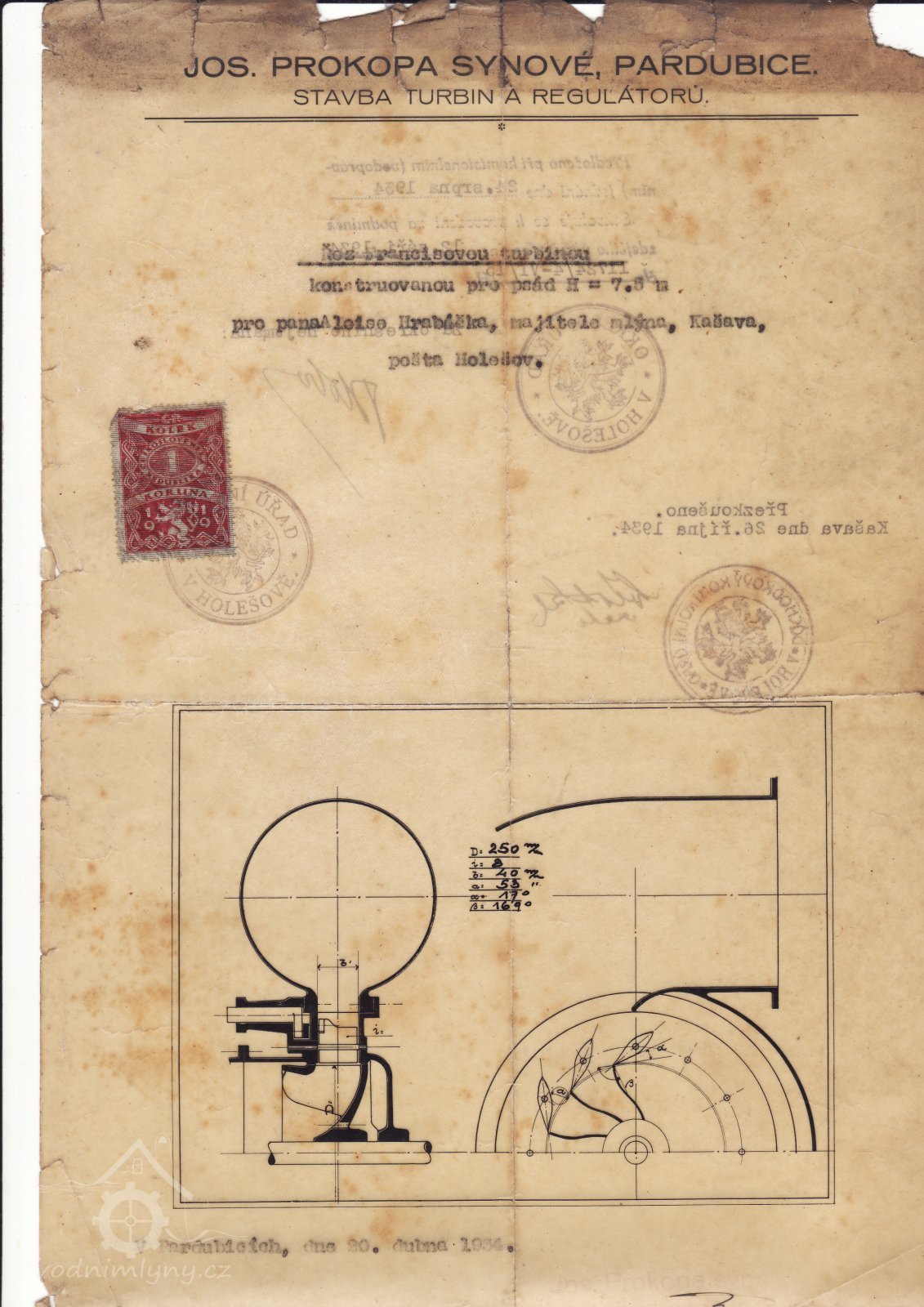 Popis1930: 1 kolo na svrchní vodu, hltnost 0,09 m3/s, spád 5,05 m, výkon 4 HP