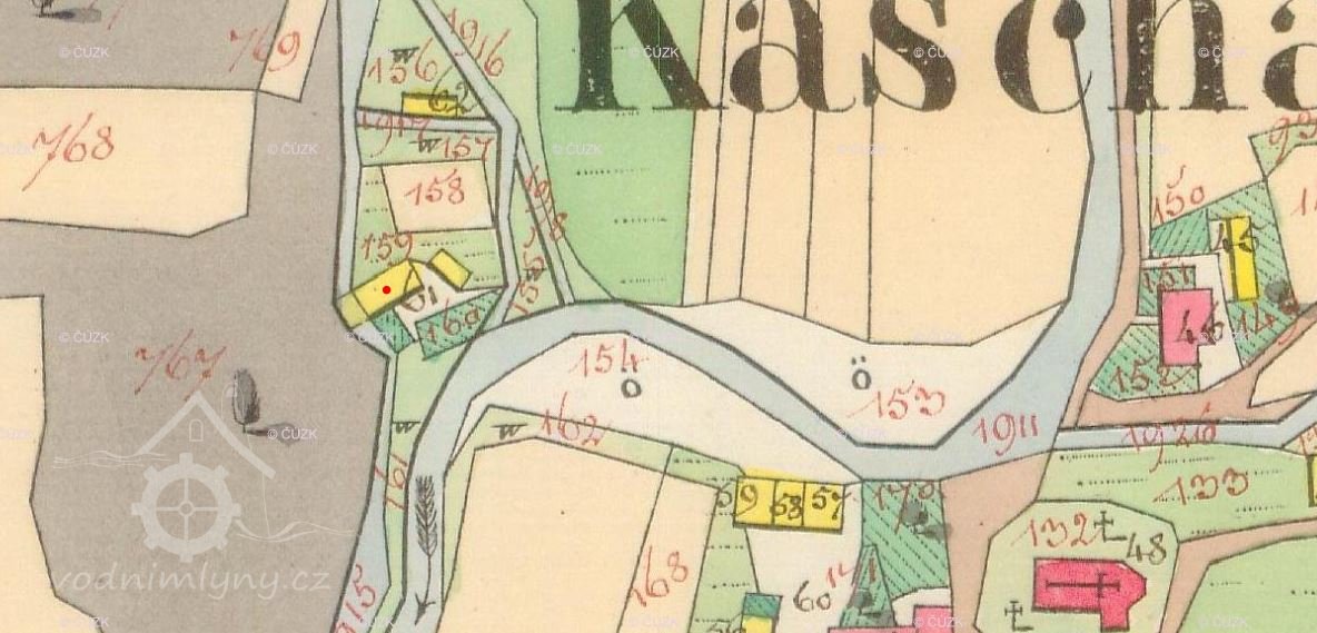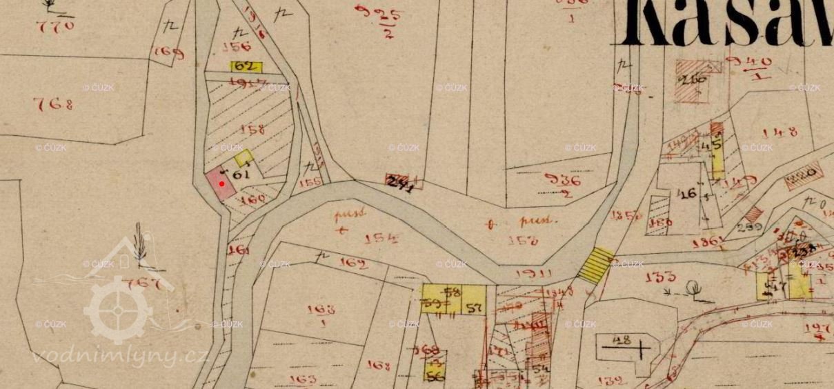 Mlýn s turbínou, který vyráběl první elektřinu v Kašavě a byl v provozu do r. 1974, poté přestavěn na obyvatelný dům. První zmínka v r. 1784. Z větší části kamenný. Náhon ručně házený 3 km vedený z Dřevnice, částečně viditelný dodnes.
