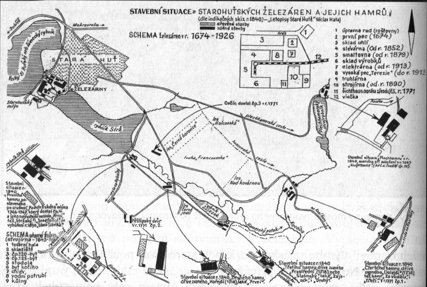 Ve Staré Huti zůstala jen malá válcovna, která s anglickými válci dávala dobré výsledky. Ovšem již roku 1843, údajně pro svou nerentabilitu, byl její provoz zakázán a její dílovedoucí Alport (kterého přivedl kníže Colloredo-Mannsfeld z ciziny) přesídlil také do Obecnice. V objektu zrušené válcovny zůstala jenom obrobna válců pro válcovny, která byla později přestavěna na strojírnu. Tato strojírna byla od 1. listopadu 1846 provozována ve spolku s pražskou strojírnou C. F. Breitfeld na společný zisk a ztrátu. Aby byl nově postavený závod využit, byl přestavěn na strojírnu. V prvních letech byla strojírenská výroba prováděna ve spolku pražským továrníkem C. F. Breitfeldem. V letech 1852-1862 měl strojírnu v pronájmu za roční nájem 3000 zlatých sám Breitfeld. Od roku 1863 přešla strojírna pod správu starohuťských železáren a aby nebyla závislá na kolísavém stavu vody, byla v roce 1864 vybavena parním strojem a stala se jedním z důležitých provozů starohuťských železáren. Vyráběla se v ní strojírenská zařízení pro březohorské doly, čerpadla na vodu, strojírenská zařízení pro papírny ve Vraném nad Vltavou, parní stroje, zařízení pil a další strojírenské výrobky. V roce 1888 zavedly železárny výrobu dělostřeleckých projektilů pro rakouskou armádu.