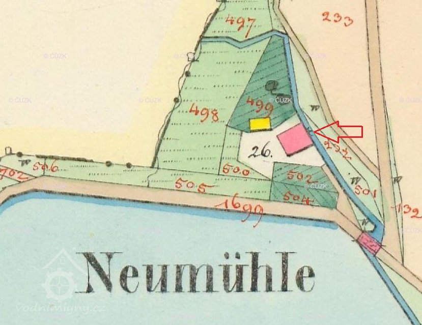 Mlýn stál v osadě nazývané Neumühle, která byla součástí obce Buková, pod hrází Mezholezského rybníka. Na jeho místě dnes stojí nový rodinný domek.