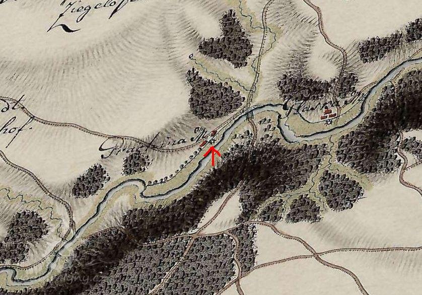 Je zobrazen na I. a II. vojenském mapování a na císařském povinném otisku z r. 1824.