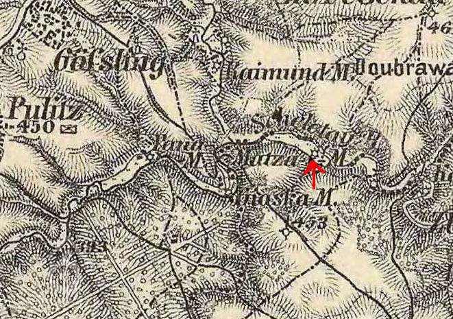 Značka Mácova mlýna je i na III. vojenském mapování.