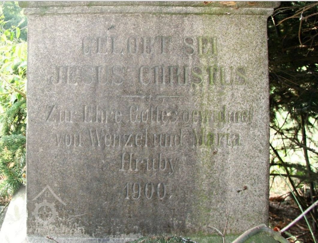 U mlýna stojí kamenný kříž z roku 1900, na jehož soklu je zápis o donátorech, kterými byli Václav a Marie Hrubých.