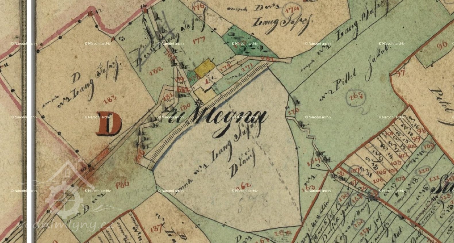 Zobrazen na I. vojenském mapování – josefském (1764-1768 a 1780-1783). Poprvé je jako mlynář uváděn Augustin Lang (*1718+1792).