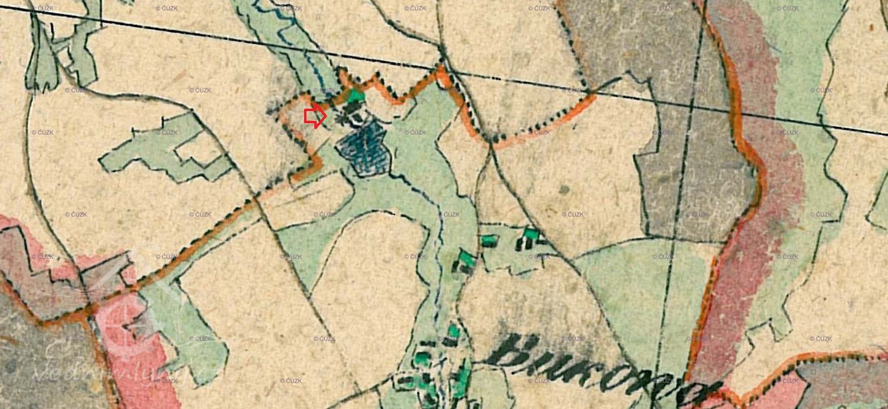 Zobrazen na I. vojenském mapování – josefském ( 1764-1768 a 1780-1783 ). Budova stojí dodnes.
