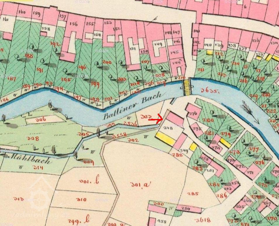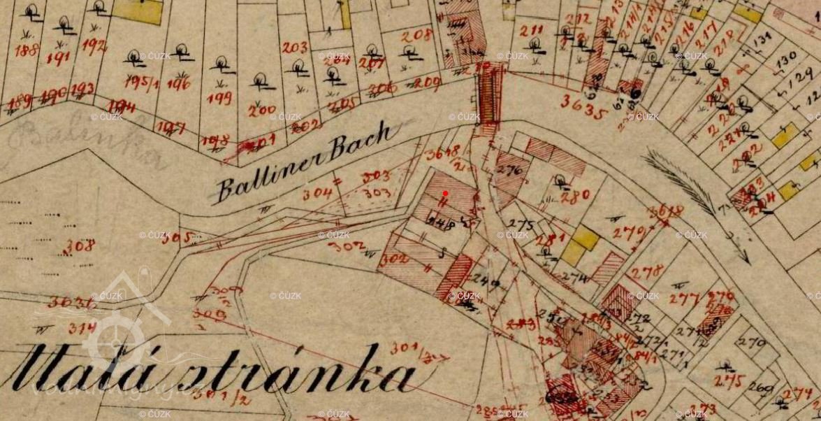 Malostránský mlýn stál za městskou branou, později u mostu, nakonec u frekventované silnice, což bylo pro mlynáře i mleče výhodné. Stál na pravém břehu Balinky, původně čp. 279, pak 313 a nakonec 342. Menší přízemní stavba s vraty uprostřed. Na pravé straně byla mlýnice a na levé obytné prostory.