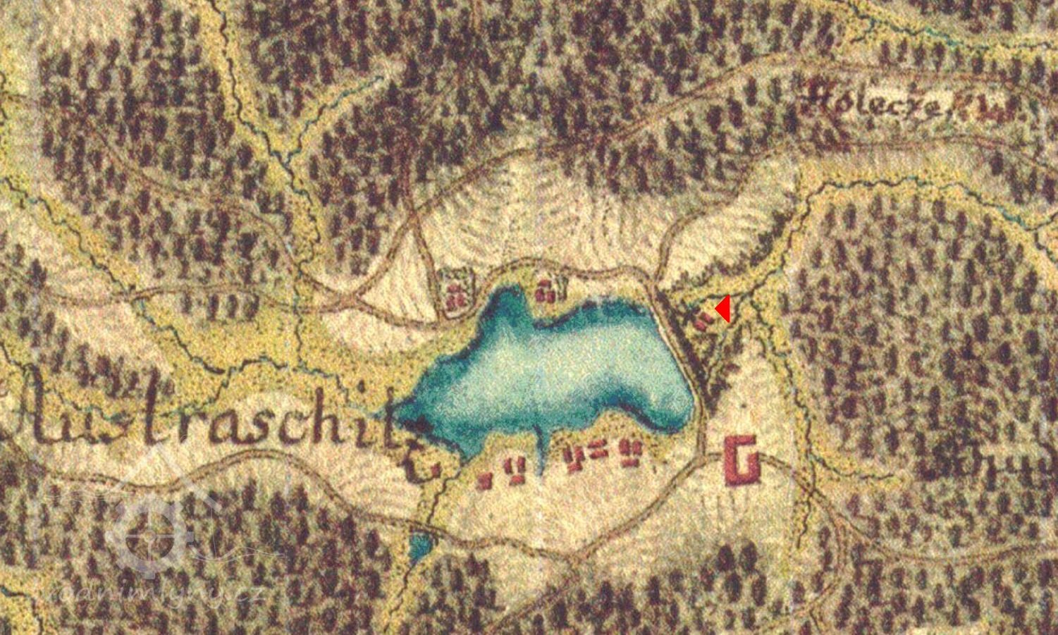 Str.2 Volf ml. (Hozlaur z Hozlau) jenž v r.1594 prodal „tvrz Ústrašice se všemi pokoji v té tvrzi“, dvůr poplužní s ovčínem, mlýnem a vsí bratru svému Petru Pavlovi (+1622) a ten zase r. 1616 Petru Voku Kořenskému z Terešova. Od něho koupil sídlo se dvorem poplužním, vsí a mlýnem František Matyáš Karel ze Šternberka (1630), načež příslušela ves k Bechyni a od r. 1677 do r. 1870 Lobkovicům. Poslední, Jan Karel Lobkovic, dal statek své dceři Marii Markétě, provdané hraběnce z Harrachů. Otto Harrach prodal r. 1907 Ústrašice s velkostatkem Želeč nynějšímu (1924) majiteli Fr. Maškovi, bývalému poslanci Nár. shromáždění... Na západní straně od okresní silnice na nynějších panských lukách, kdež se dosud říká „Na rybníkách“ býval rybník neznámého jména. Plocha jeho sahala až k nynějšímu panskému remízku. Sloužil jako nádržka pro bývalý vodní mlýn. Při velké povodni, asi před sto lety, se hráz protrhla. Mlýn byl povodní také poškozen. Voda sebrala mlýnské kolo a zbořila mlýnici. Od té doby se tam nemlelo. Majitel neměl peněz na opravu mlýna a proto jej předal i se svým majetkem knížeti Janu Lobkovicovi. Z celého mlýna zbývá dnes už jen obytné stavení, které náleží nynějšímu velkostatkáři Fr. Maškovi a slouží za obydlí deputátníkům. Dosud se tam říká „na mlýnku“. Asi 20 /kroků/ minut pod tímto mlýnem při Ústrašickém potoku, v lese na rozhraní polesí „Černá paseka“ a „Zaháje“ nachází se též umělá hráz, u níž prý stával kdysi také mlýn. Mlýn tento byl asi zmíněnou povodní též poškozen a zanikl. Hráz zůstala a strouhou povodní způsobenou protéká dnes Ústrašický potok, kdežto dříve tvořil obkliku...