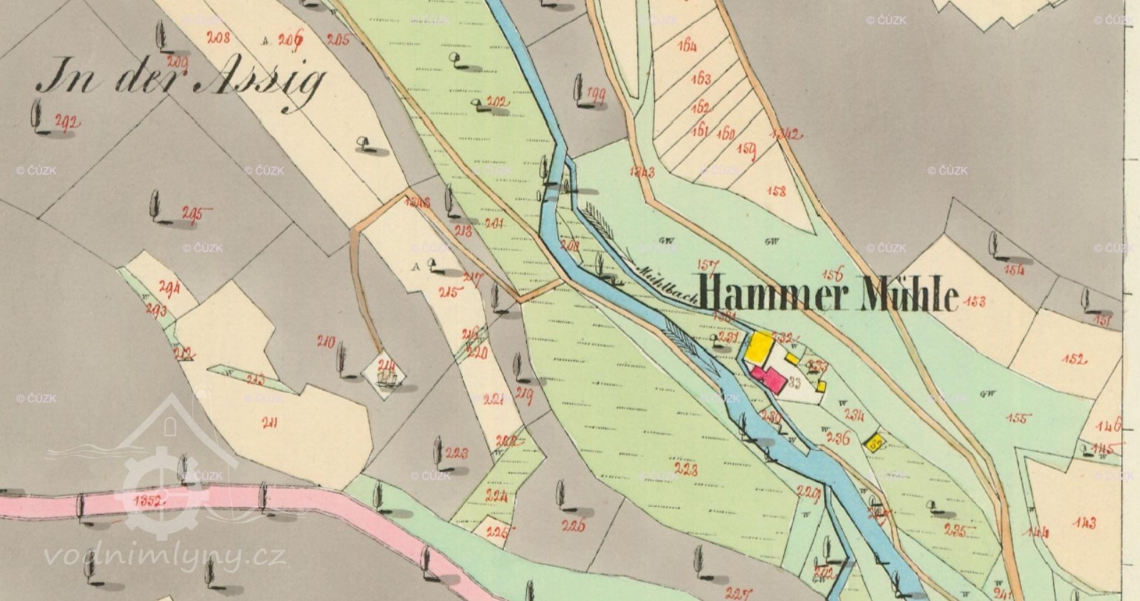 Schwartzmühle jako porvé zmíněn již roku 1710. Během poloviny 19. století přebudován na vodní hamr.