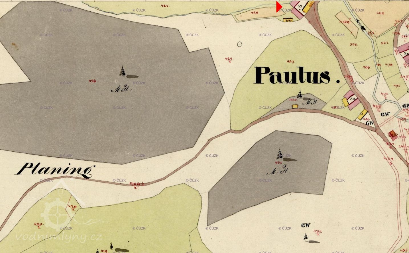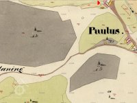 Mlýn, stál v k.ú.Křížovice/Krzizowitz/ dnes: Křížovice u Ktiše/ a je zobrazen na mapě stabilního katastru :Čechy -3672-1, mapové listy číslo 002 a 005, v místní části osady, zvané Paulus.
