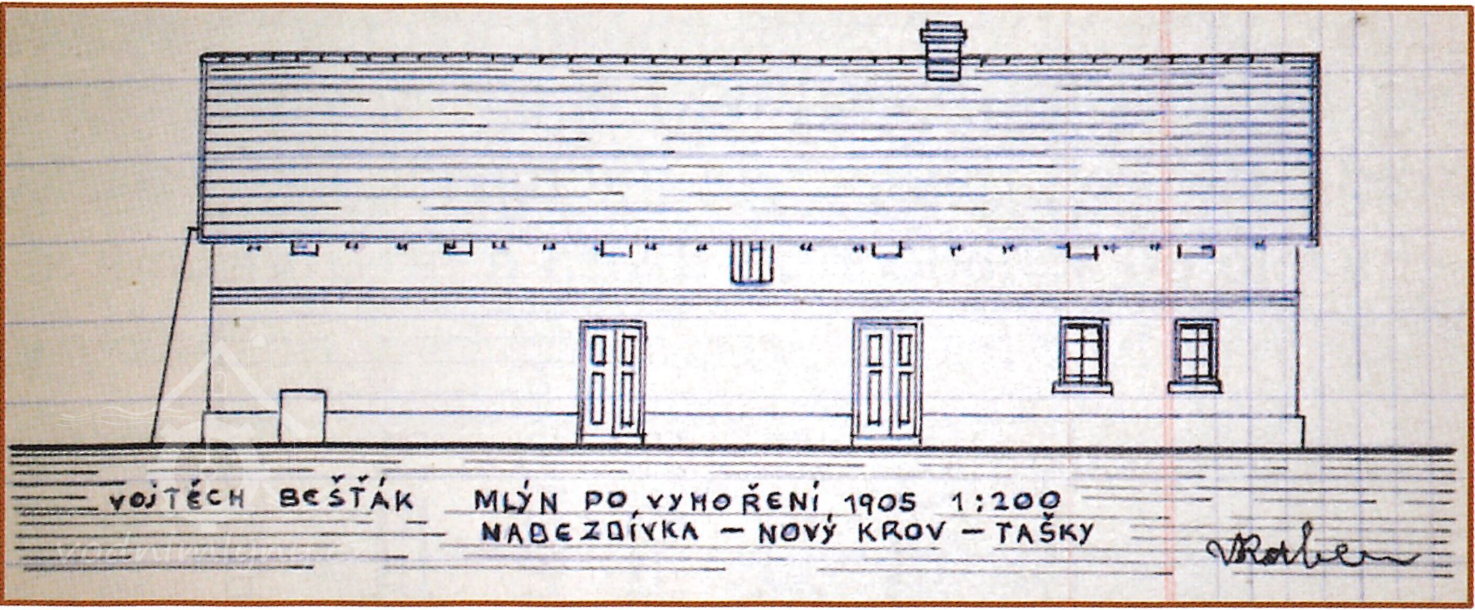 Návrh na přestavbu mlýna po požáru, 1905, © V. Korbel
