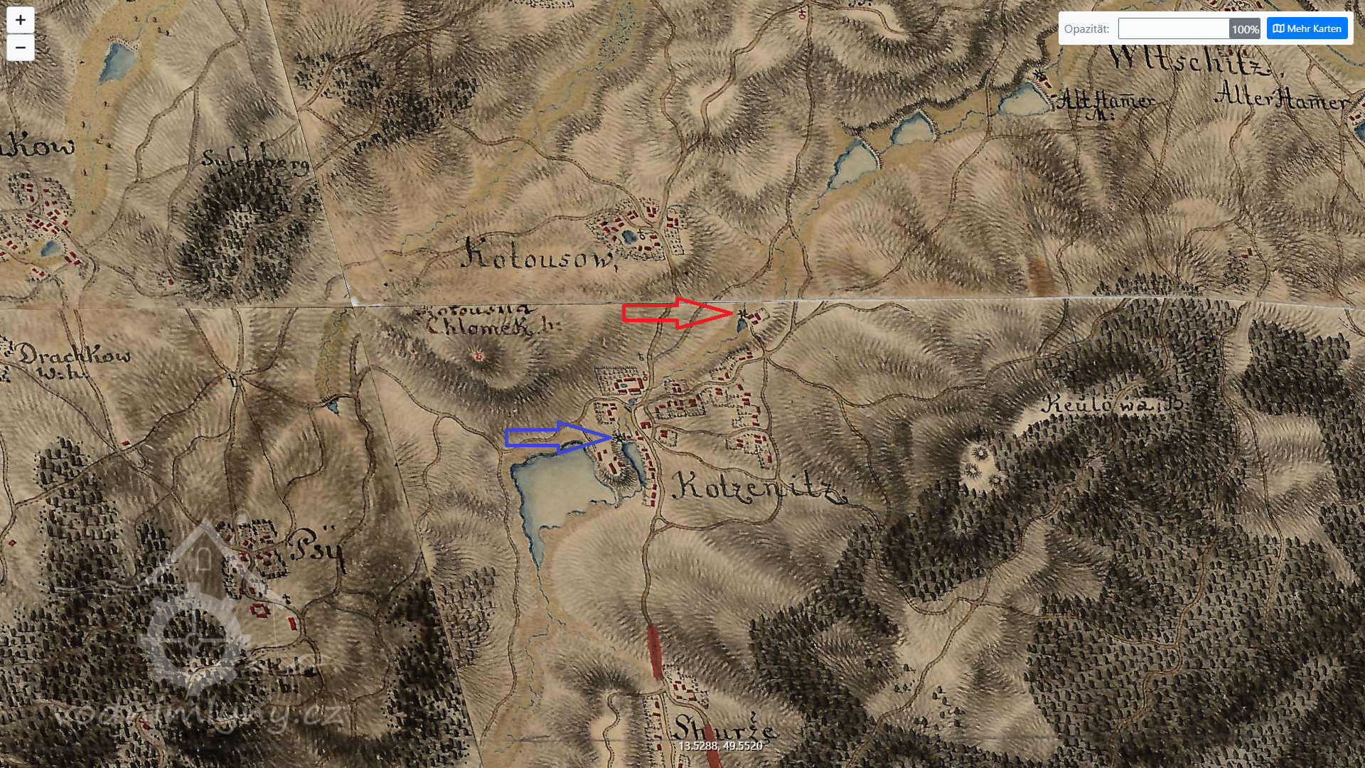 I. vojenské mapování, výřez, 1764-1768, © http://oldmaps.cz
