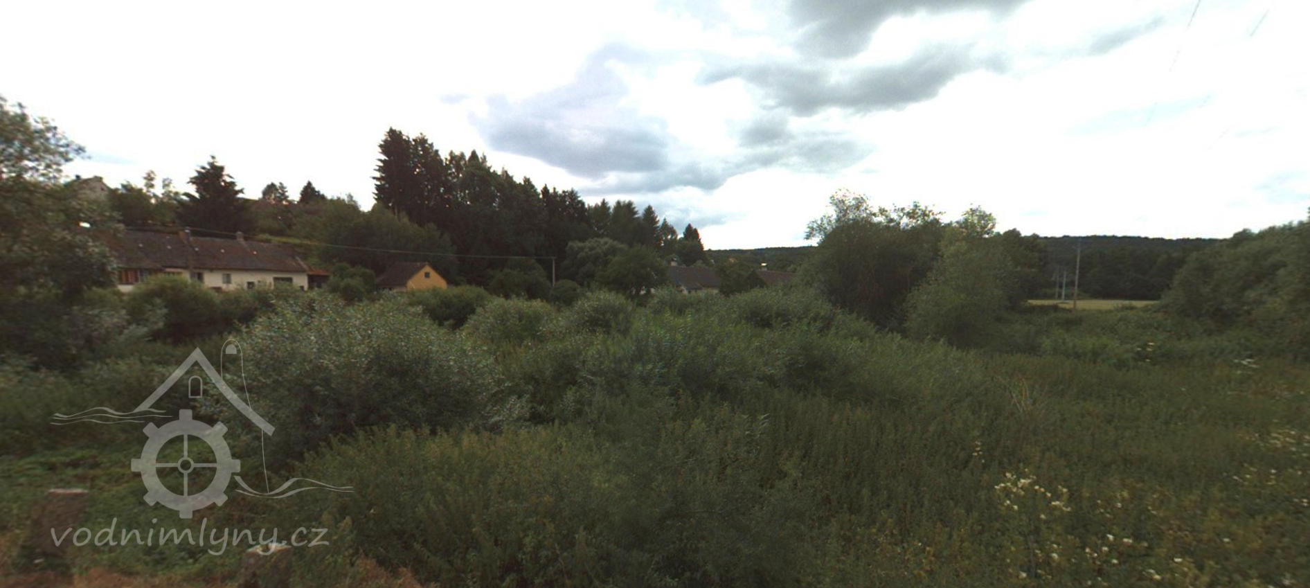 Pohled na možné mlýniště, vlevo objekty čp. 9 a 10, 2015, © mapy.cz