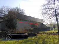 Současný stav stodoly s trámy před budovou, 2018, © viz sreality.cz