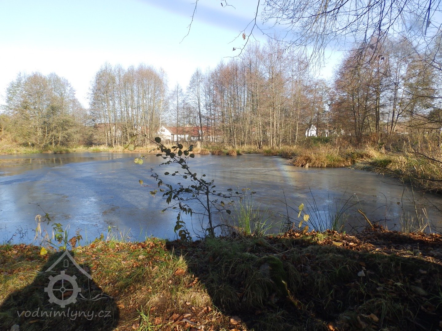 Částečně vypuštěný Velký bělčický rybník nad mlýnem, 2019, © doxa