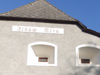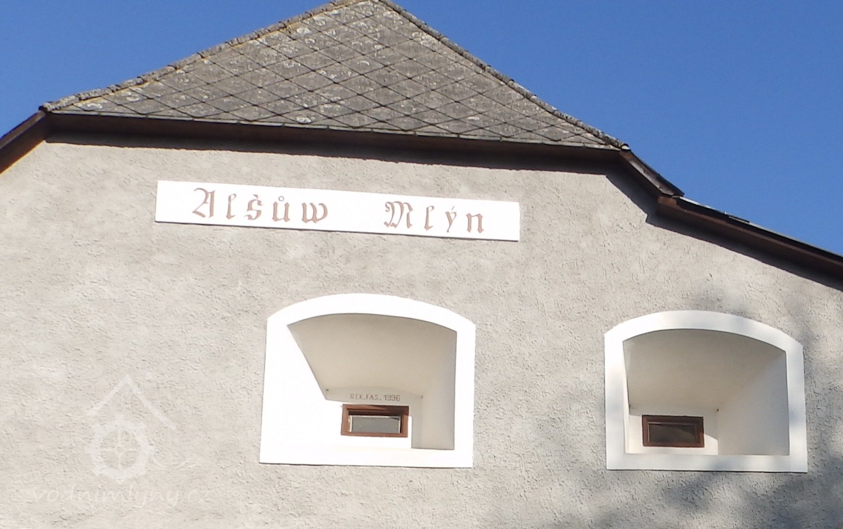 Detail nápisu Alšův mlýn ve štítě, 2019, © doxa, (Prvky na obrázku: epigrafické památky (nápisy, datování aj.))