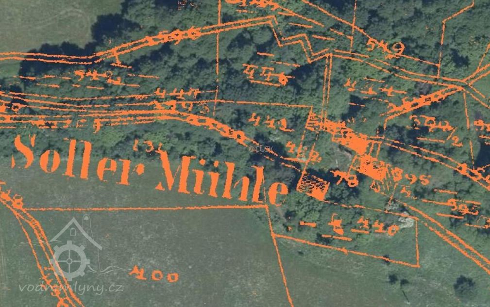 Ortofoto a mapa pozemkového katastru, 2009-2015, © viz cirkevni-restituce.cuzk.cz