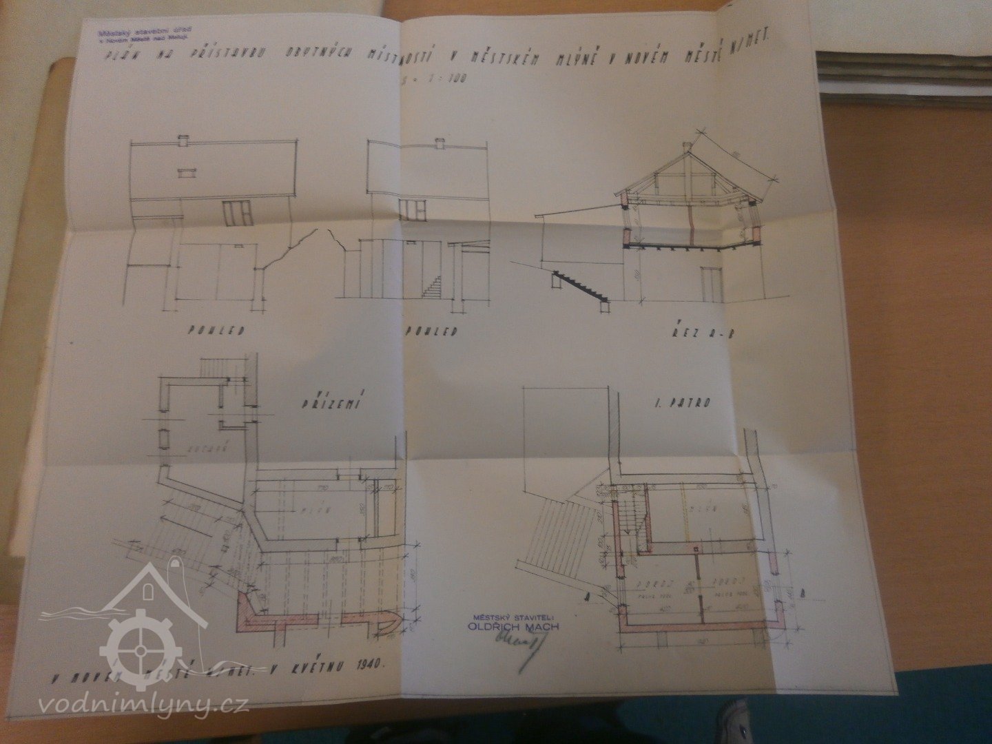Plán přestavby mlýna, 1938, © Václav Zima, Bystré