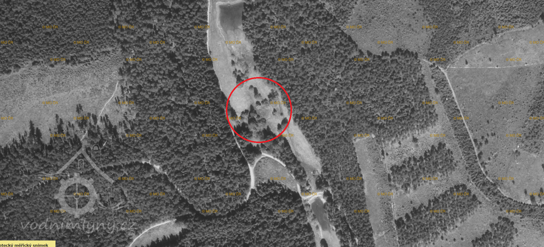 Letecký měřický snímek, výřez (mlýn již zmizel), 1947, © lms.cuzk.cz