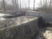 Přeliv rybníka, vlevo vzadu zbytky stavidel, 16.2.2023, © Pepino