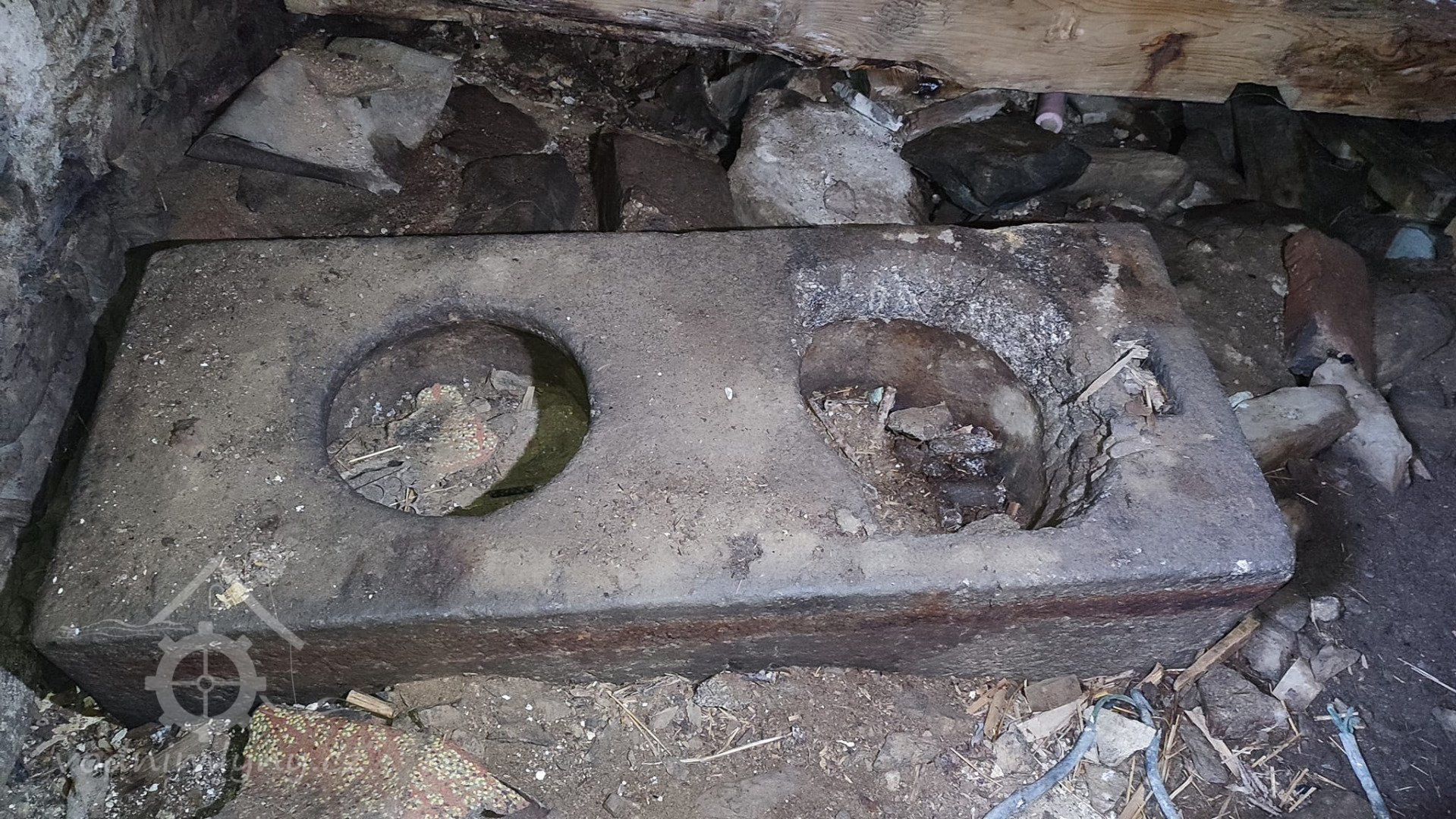 pohled na návodní zeď a lednici s unikátně dochovaným původním vodním kolem, 2023, © David Veverka, (Prvky na obrázku: lednice)