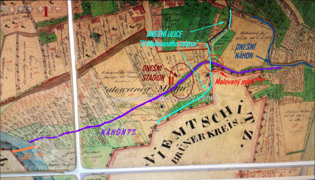 Dávno zaniklý středověký mlýn, dnes zachovaný pouze v názvu ulice. Jeho přesnou polohu neznáme.