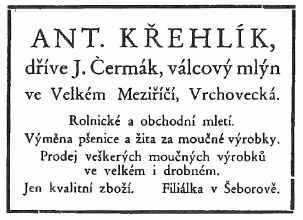 Koncem r. 1918 předal mlýn synovi Josefu Čermákovi ml., profesoru na Čs. obchodní akademii v Brně., ten se 1923 s Marií Adamovou, kožní lékařkou v Brně, dcerou pražského báňského inženýra dr. Vincence Adama