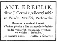 Mlýn degfinitivně zastaven, přestavěn na byty, bydlí zde nevl. bratr Antonína Křehlíka Josef Kašpar s rodinou.