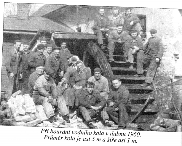 již nefunkční vodní kolo se zde nacházelo až do dubna 1960, před zatrubněním náhonu bylo odstraněno
