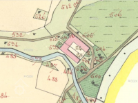 Mlýn pravděpodobně stával na místě dolní části nynější hájenky (č. 15). Byl asi dřevěný o jednom sloţení a vodním kole, poháněn vodou z potoka Mařek, který pramení u obce Hodov. Hájenka stojí těsně na samém břehu potoka a na jeho korytě je dosud patrné roubení (opěrná zeď) v délce 20 metrů. V těchto místech je koryto hluboké 2 metry. Na horní části hájenky (č. 16) Osové býval jiţ zmiňovaný dvůr. Číslo 15 je dnes obydleno rodinou Práškovou a číslo 16 rodinou Smejkalovou.