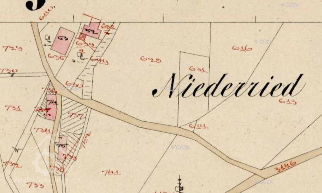 Mlýn na samotě jižně od obce. Z mlýna dochováno obytné stavení, mlýnice, která stávala za ním, dnes zbořená.
