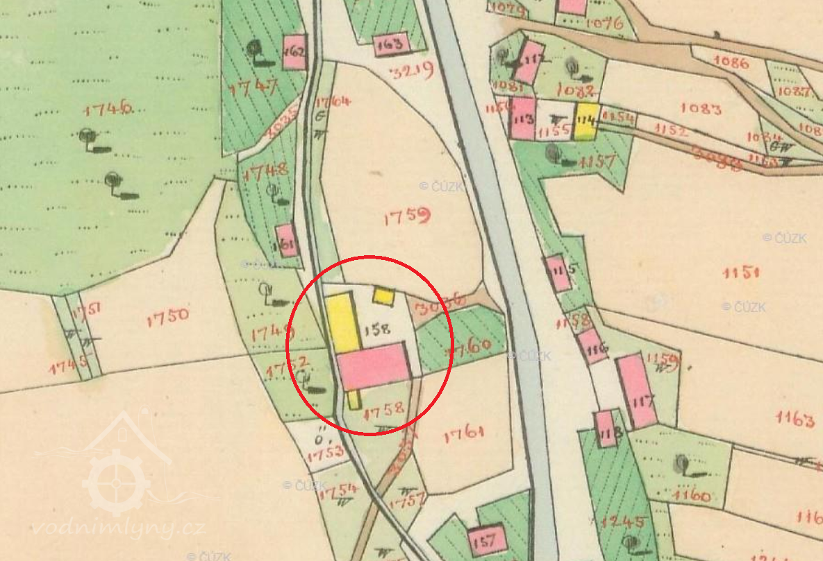 Popis1930: 1 kolo na svrchní vodu, hltnost 0,1 m3/s, spád 4,6 m, výkon 4 HP