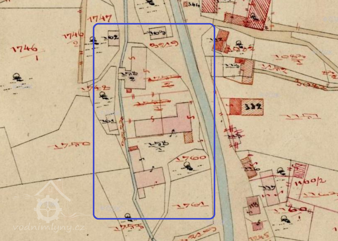Mlýn s komplikovaným stavebním vývojem, původní menší mlýn byl v nedávné době zbořen, v 2. pol. 19. stol. přistavěn větší objekt, z něhož část dnes využívá dnes firma Kompozity Michalík s.r.o.