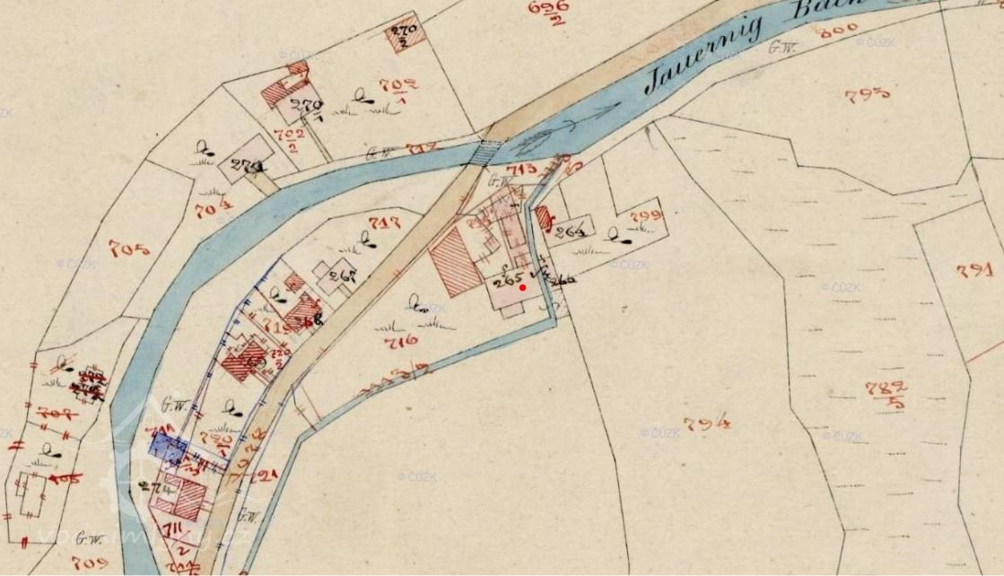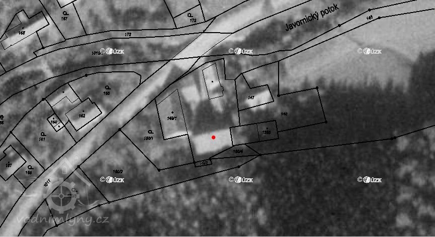Druhý mlýn v Javorníku, mlýnice dnes zbořena, stojí obytný a hospodářský trakt.