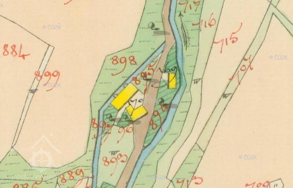 Popis1930: 1 kolo na svrchní vodu, hltnost 0,065 m3/s, spád 6 m, výkon 3,4 HP