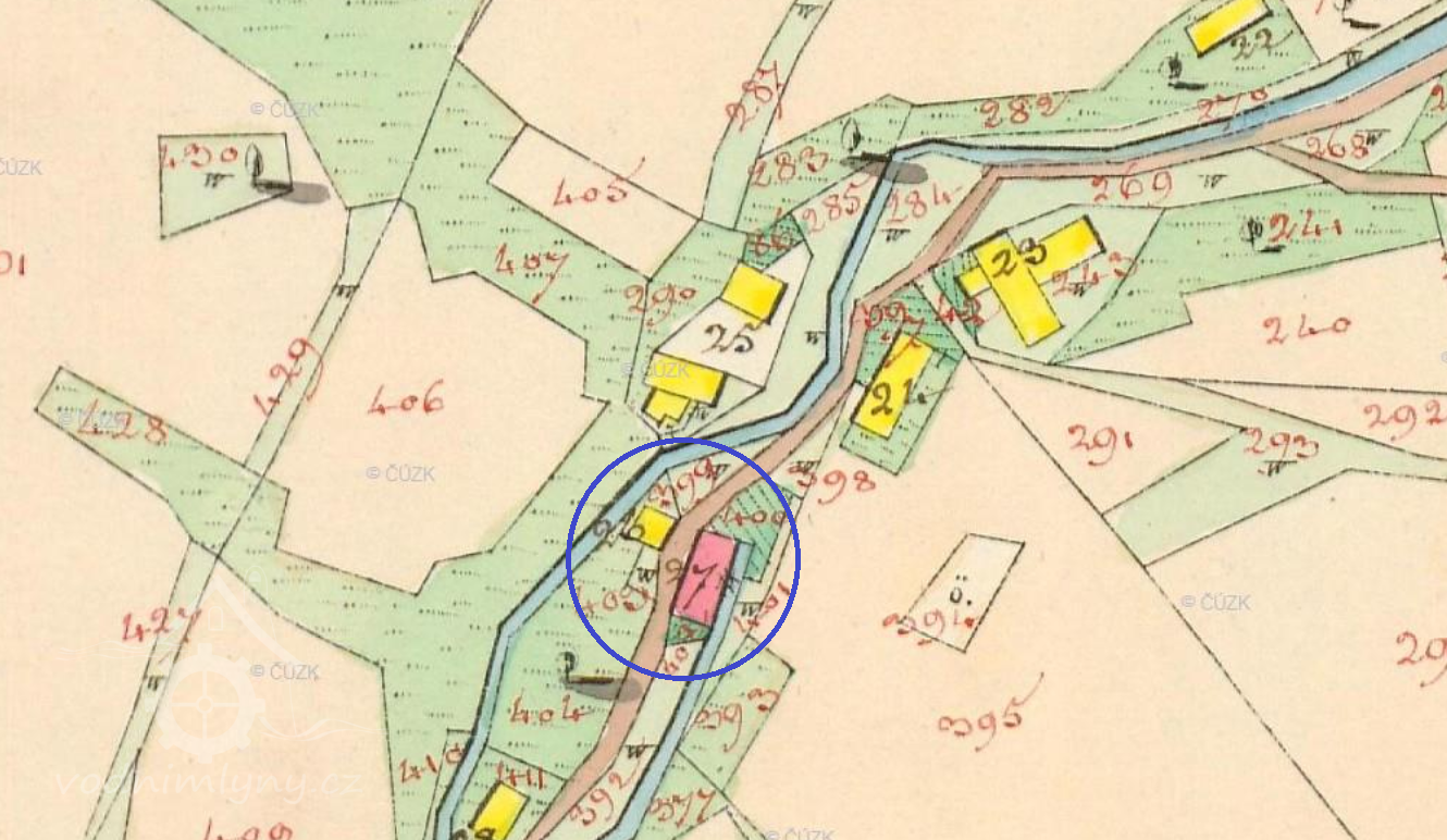 1886 mlýn přestavěn (letopočet v jižním štítu)