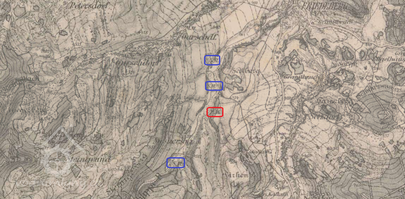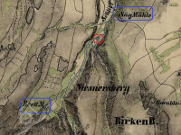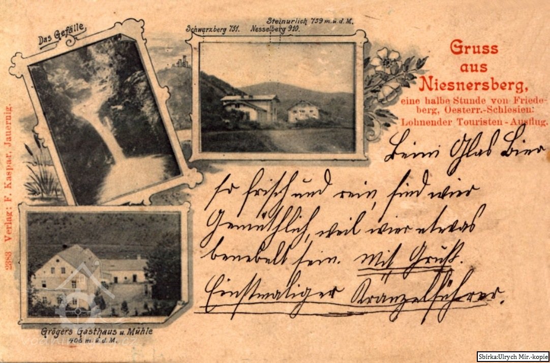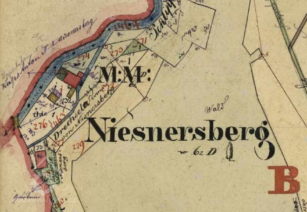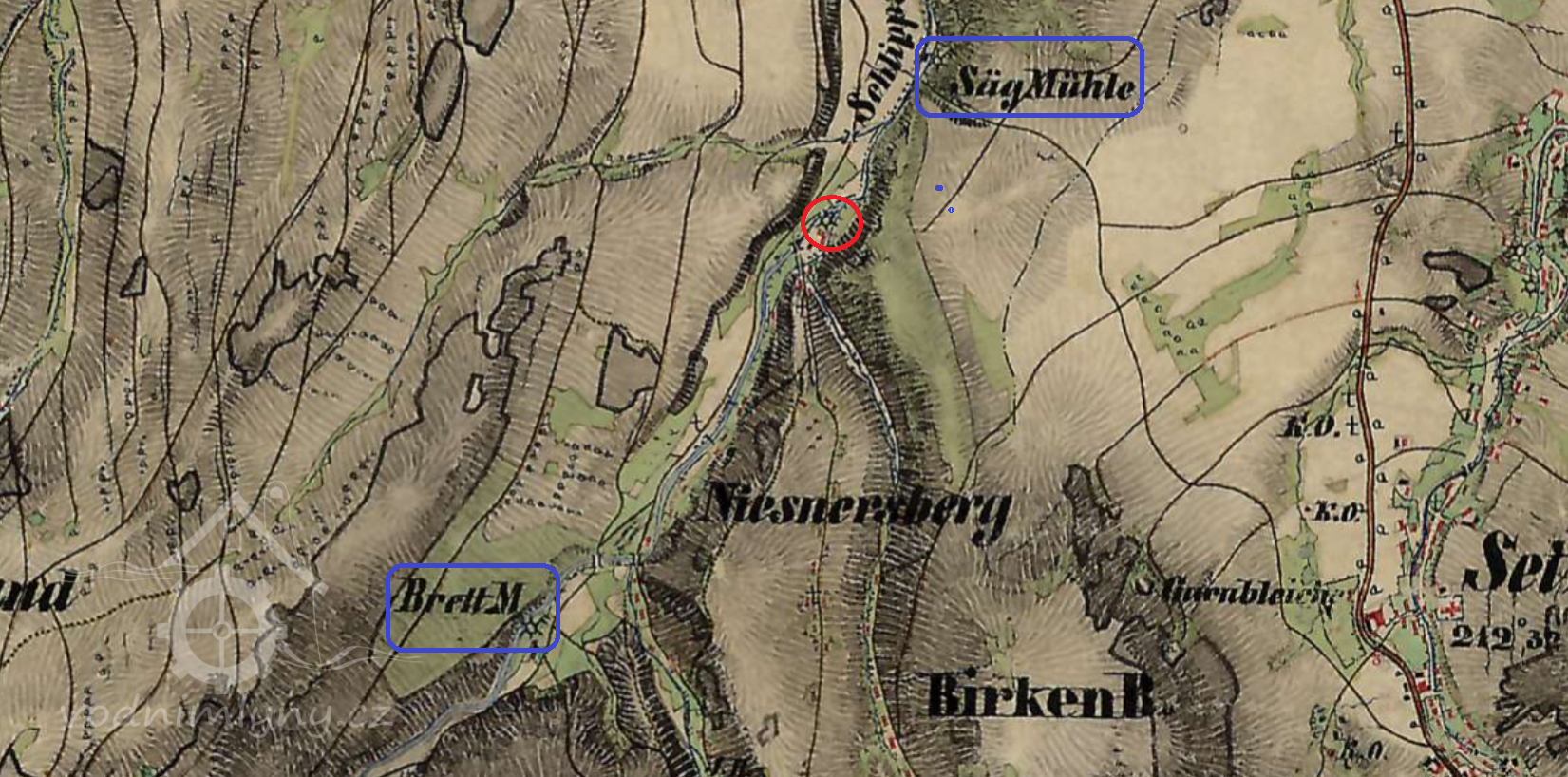 Zachovalý větší mlýn na samotě v jihozápadním výběžku katastru. 1930 elektrárna. Nad mlýnem i pod mlýnem ležely samostatné pily.