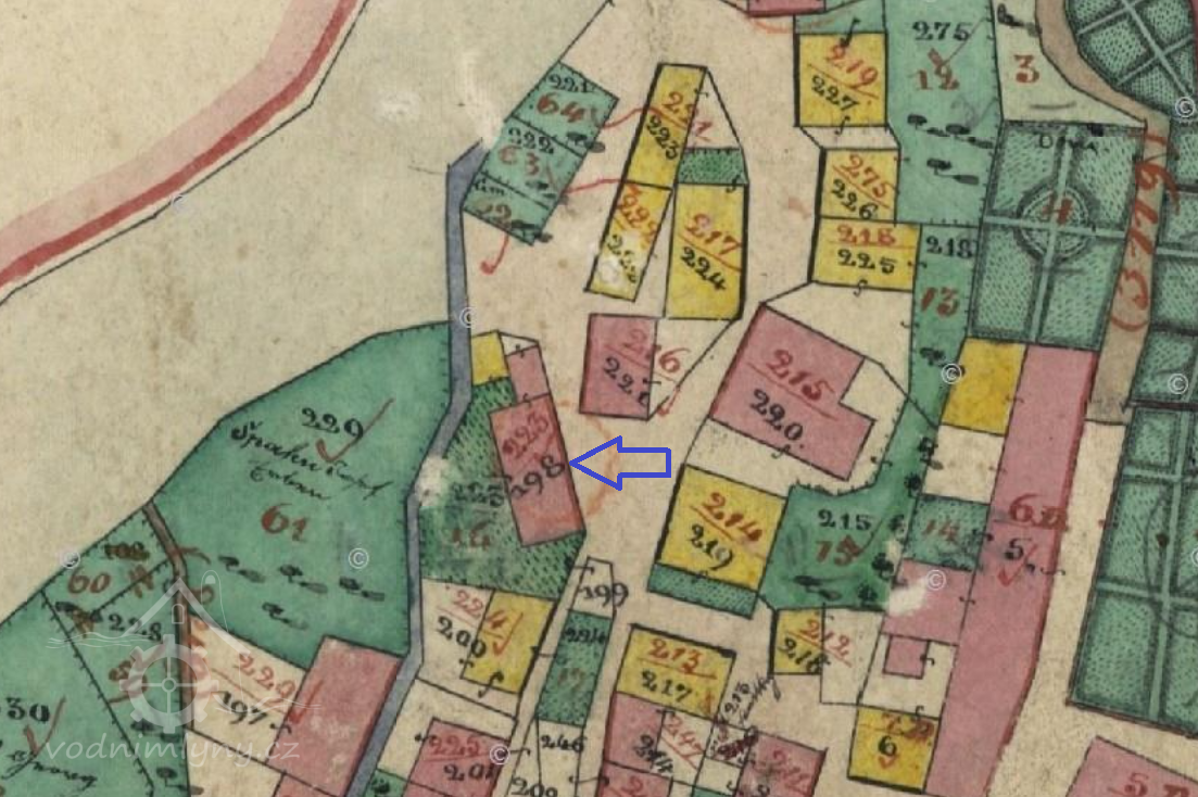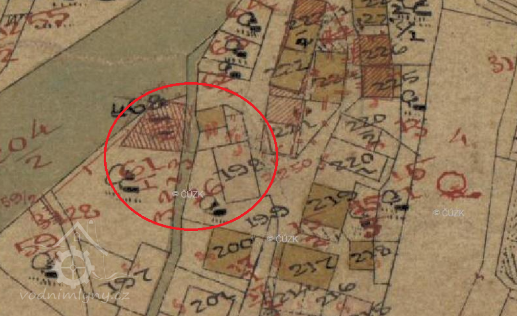 1748 Tereziánský katastr: obilní mlýn o 3 kolech na nestálé vodě