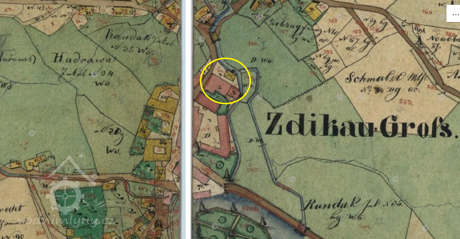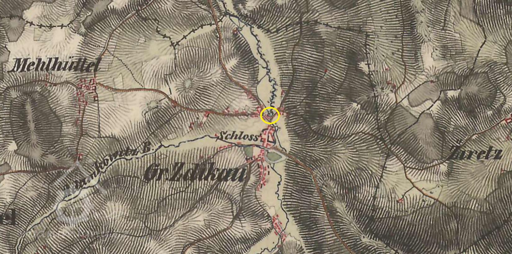Mlýn je zachycen již na mapě I. voj. mapování.
